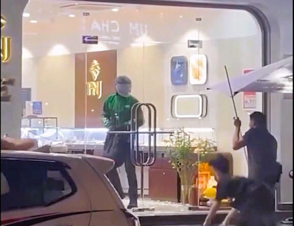 Bảo vệ cửa hàng lao vào ngăn cản nhưng bị hắn dùng dao tấn công liên tiếp vào vùng đầu. Sau đó, đối tượng nhanh chóng dùng búa đập vỡ kính tủ trưng bày, lấy đi số lượng lớn trang sức.